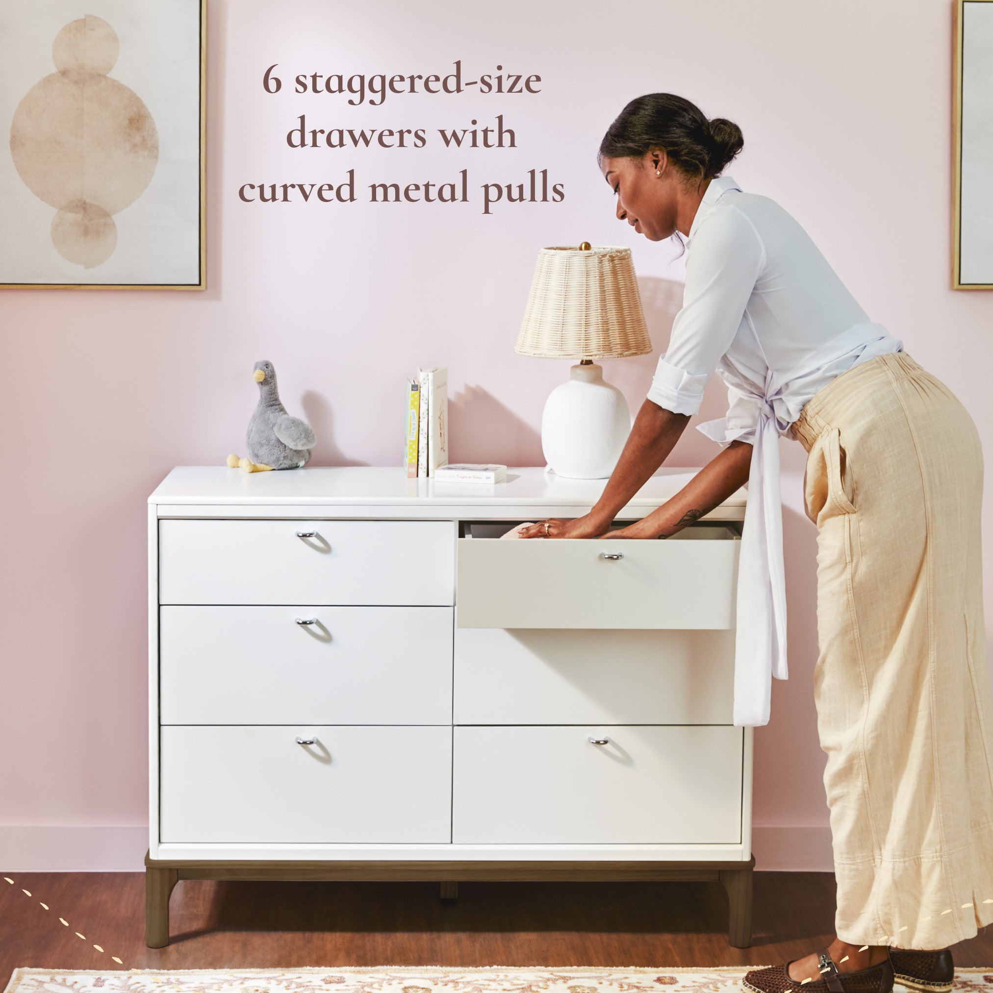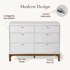 Our Laurel dresser has 6 staggered-size drawers for plenty of storage. Drawers are highlighted by modern metal pulls, creating a clean, minimalist look.